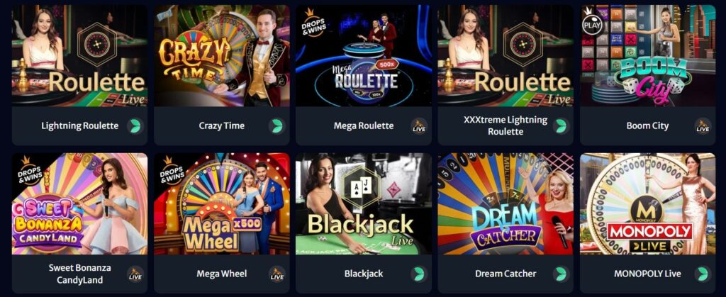 The live table games Are also present, divided into game categories: poker, blackjack, baccarat, game shows … as for slot machines, the number of games is important and very varied.