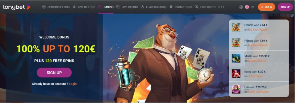 Tonybet Casino is very generous in terms of promotions and Welcome Bonus at Casino :