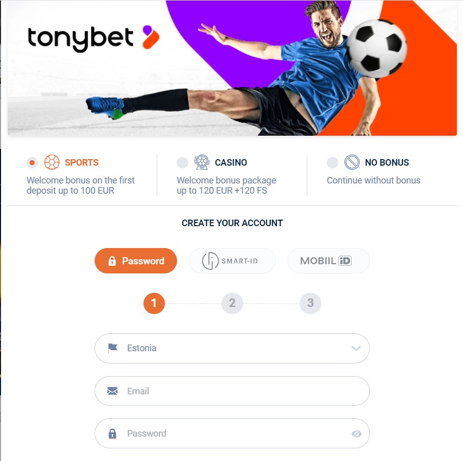 How to register on Tonybet