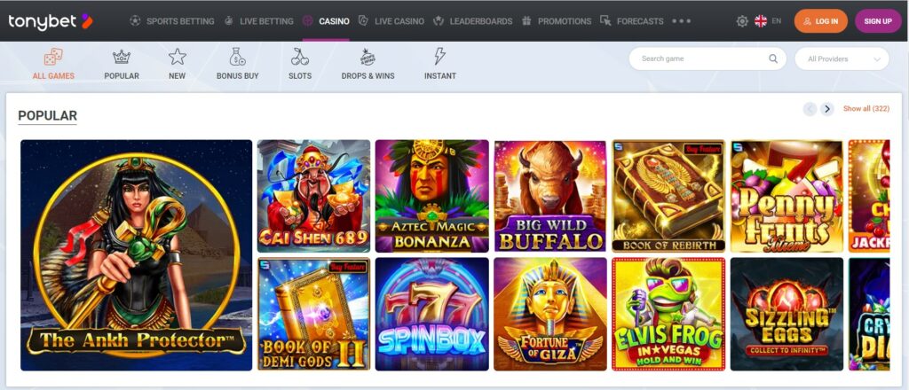 Tonybet possesses the most popular machines